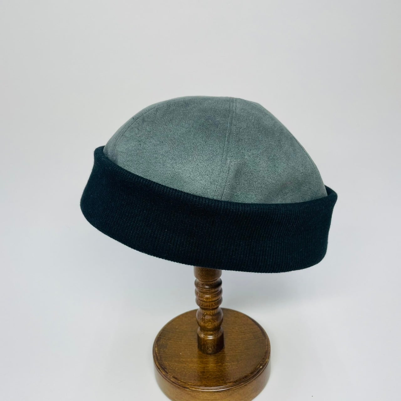 上質な人工スエードが優雅な印象を与えるロールキャップ。
